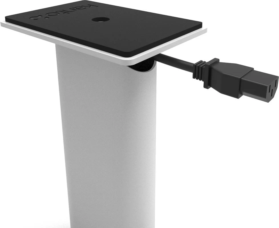 - Each stand features a hollow support column to conveniently route your cables. Enjoy more desk space with your speakers raised and cables hidden.